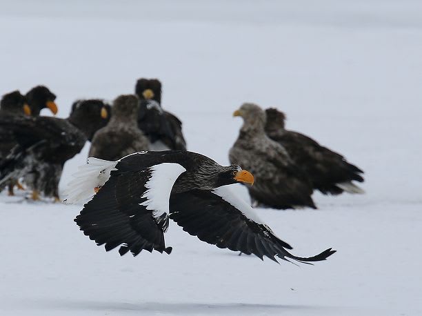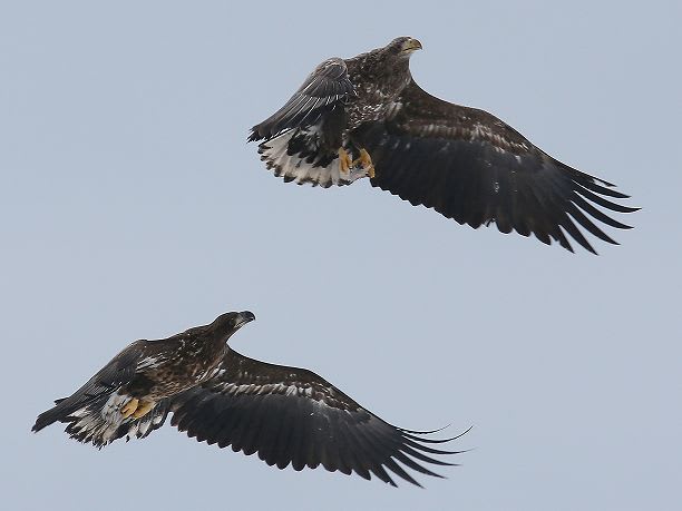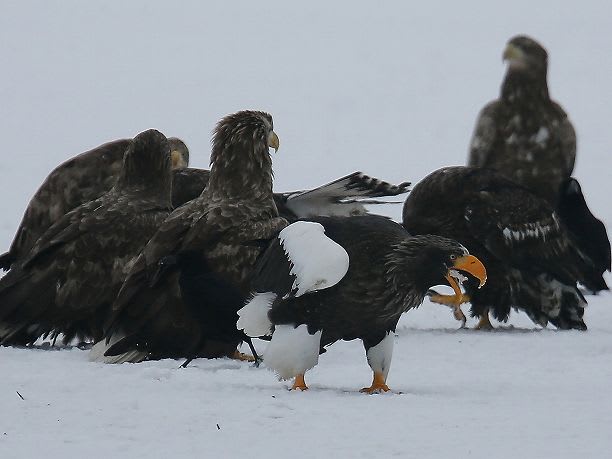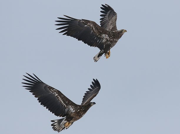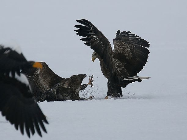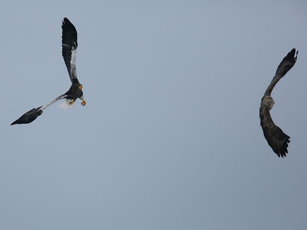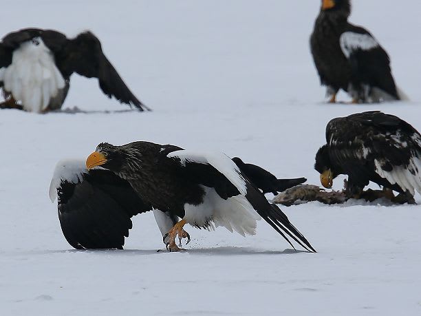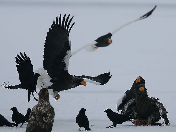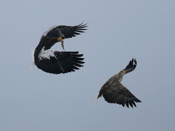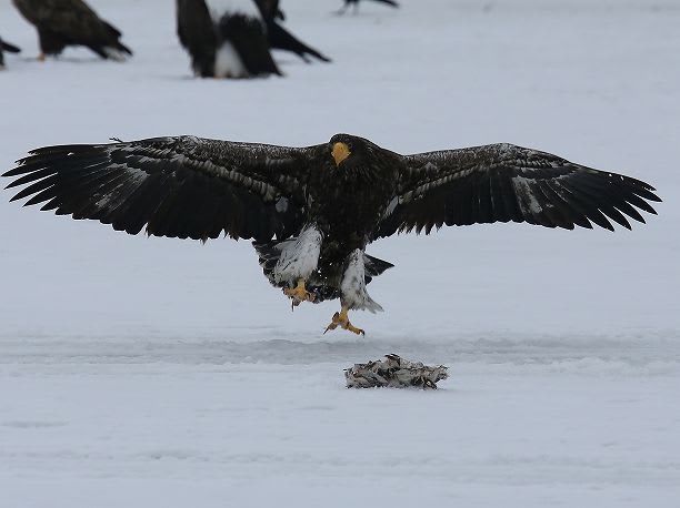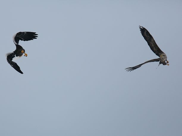 ![]() オオワシ若の食べ物をみるオジロワシ |