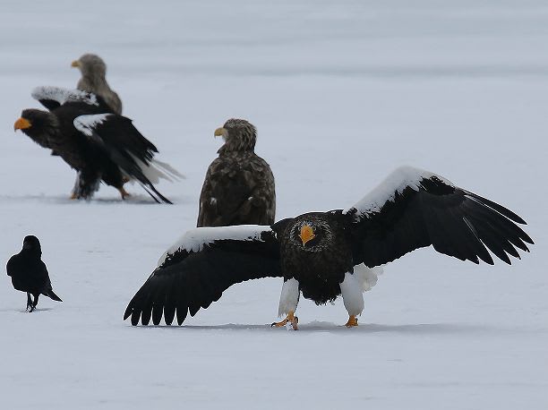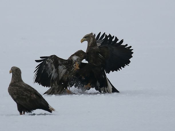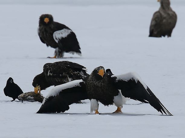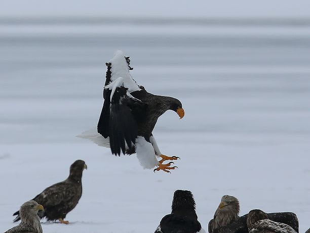 この季節弾丸低気圧が道東付近で猛威を振るうので日程には充分な余裕をもって、出発も1日前にして、風連湖でオオワシとオジロワシを堪能しました。