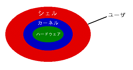 OSとしての UNIX は、計算機のハードウェアに近い核心部分のカーネル、